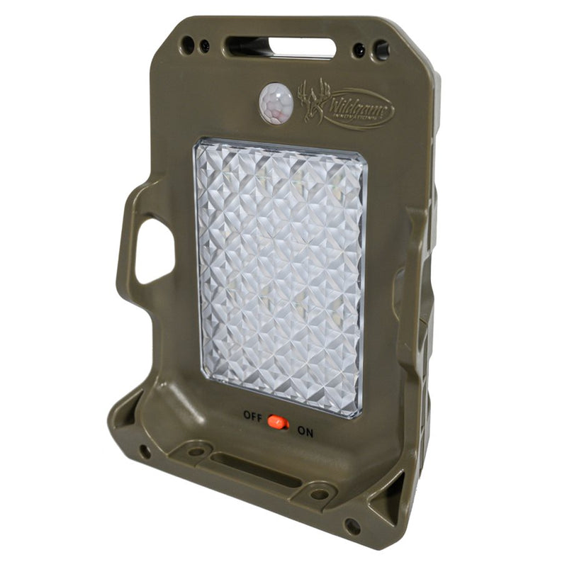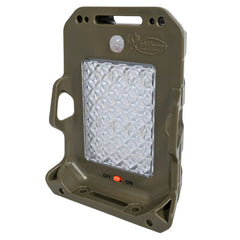 Kraftfull grön belysning till foderplats från Wildgame Innovations med inbyggd rörelsessensor, solpanel och litiumbatteri.