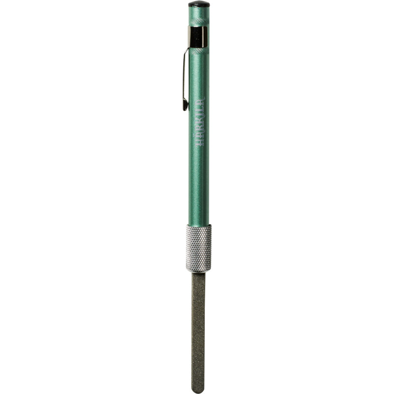 Behändigt 13 cm långt pennbryne av diamantbelagt härdat stål. Det pennformade brynstålet ligger i ett aluminiumfodral och är praktiskt att ha med ut om din Härkilakniv behöver slipas. Det kan användas till slipning av olika föremål, som sågtänder, buköppnaren på Glommakniven eller fiskekrokar.
