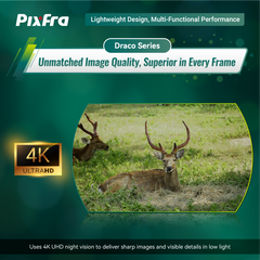 - Imponerande bildkvalitet, överlägsen i varje bildruta. Draco utnyttjar pixelrik 4K UHD-nattvision för att höja skärpan till nya höjder. I svagt ljus ger den exceptionellt klara bilder som överträffar många konkurrenter. Dessutom säkerställer den förbättrade känsligheten för nattobservationer att detaljerna förblir synliga, även när det knappt finns något ljus.