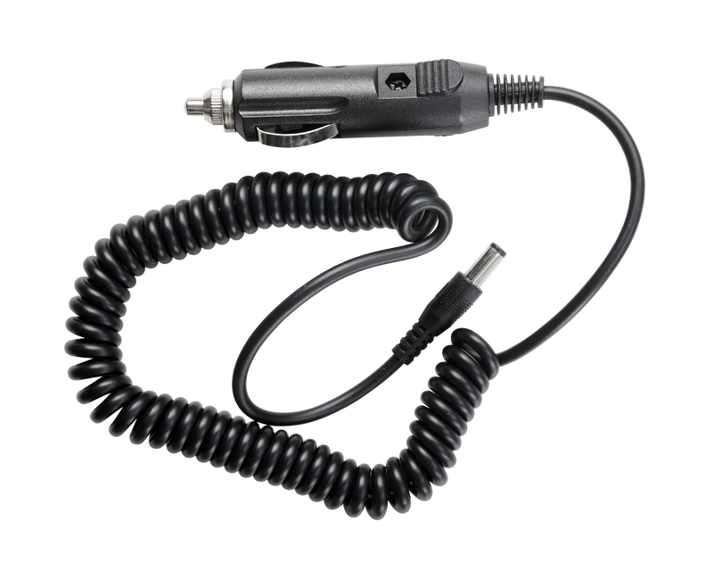 12V ciggkabel för laddning i fordon, ansluts till bordsladdaren som medföljer jaktradion.