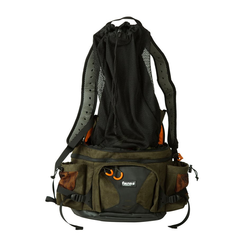 Praktiskt höftbälte som ger stöd i nedre delen av ryggen och med plats för det du behöver för korta jakt-/dagsturer. Integrerat i väskan är ett spelnät med bärremmar, som kan tas bort så att höftbältet kan användas för dagsutflykter. Fauna F12 Hip tillverkas i det tysta och vattentäta Fauna-tyget SL450:3 med kraftiga spännen och YKK-dragkedjor.