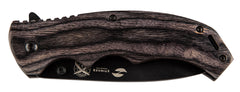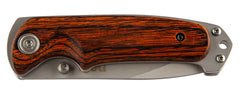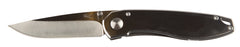 Fällkniv i rostfritt stål med trähandtag. 21cm utfälld och 12cm hopfälld. Vikt 133g.