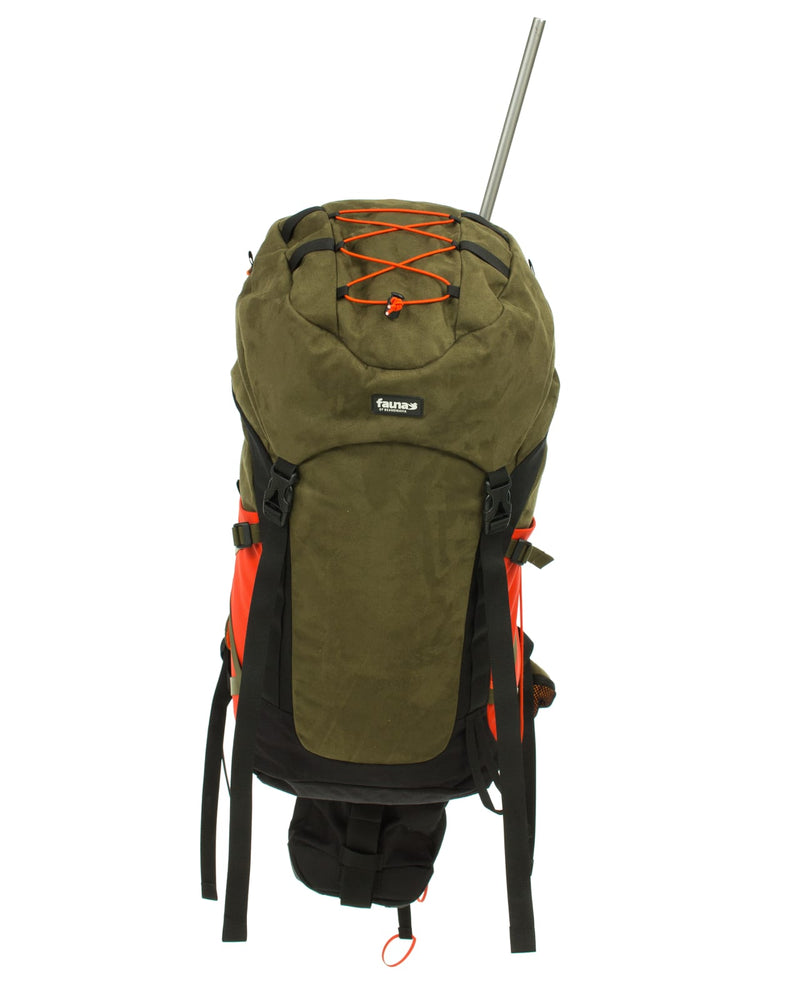 Fauna FH45 Holster Rifle Backpack är en fullfjädrad jaktväska med vapentransportsystem. Den rymliga förpackningen är perfekt för långa jaktdagar i fjällen och i skogen. Med ett förstärkt höftbälte har förpackningen hög bärkomfort och tål tung packning. Axelremmarna är utformade för att göra det bekvämt att skjuta med en ryggsäck på ryggen. Axelremmen är vadderad över axeln med en gunga över bröstet så att rustningen inte står i konflikt med remmen. Fauna FH 45 har ett övre lock med invändiga och utvändiga fickor, sidofickor och olika fickor i huvudfacket. Vapenhölster kan \”döljas\” så att det inte är i vägen när du använder väskan utan vapen. Vilda nät och signalfärgat regnskydd ingår.
