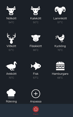 *Rekommendationer på olika tillagningstemperaturer beroende på kött.