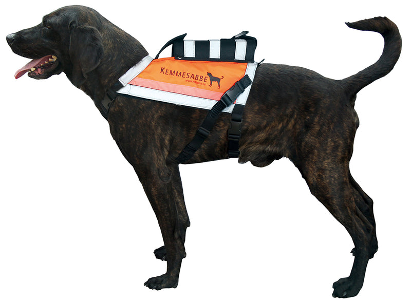 Tvåfärgad - riktningsbestämning möjlig vid dålig sikt. Resår och skavskydd - ger bra passform och liten skavrisk. Metallring för koppel - enkelt att koppla hunden.