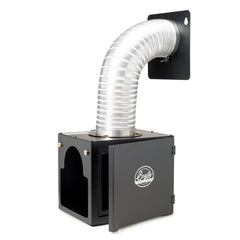 Rökskåpet placeras en dryg halvmeter över kallrökningsenheten och ansluts till den med hjälp av den flexibla metallslangen. Kompletta instruktioner medföljer.