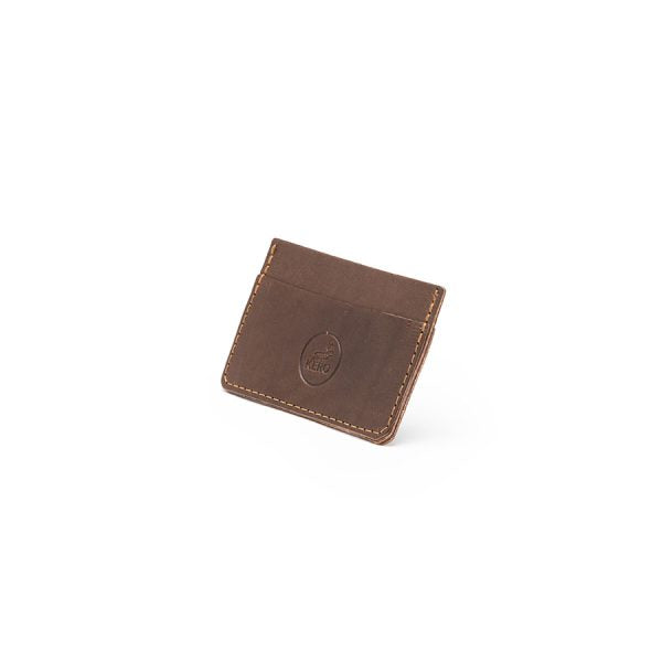 Plånbok i naturgarvat skinn. Totalt tre fickor i kreditkortsstorlek. Ett fack på vardera sida samt ett mittenfack