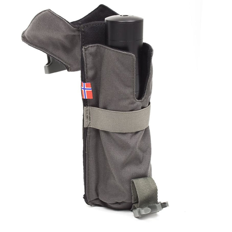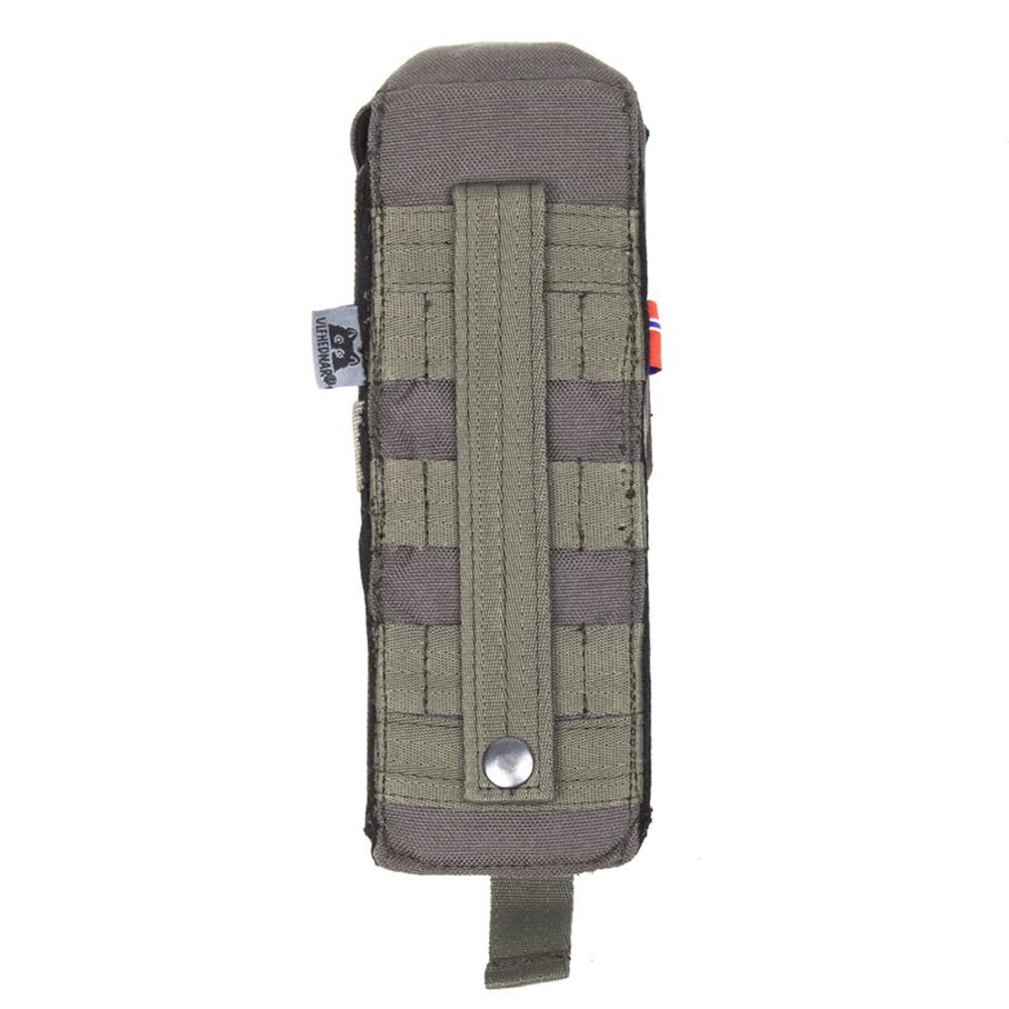 UlfHednar Ljuddämparficka är tillverkat utvändigt av väderbeständigt och hållbart Cordura(R),invändigt är den klädd med isolerande Kevlar(R) tyg, som tål värme upp till 250 grader. Den har Molle fäste för att enkelt kunna fästas på ryggsäckar, dragbags eller i bältet. Hållaren har ett lock som låser med snabbspänne.