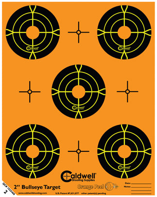 2\” Bulls-Eye Orange Peel® måltavlor är självmarkerande och självhäftande inskjutningstavlor från Caldwell®! Orange Peels® låter dig se träffar på och bredvid Bullseye med en tvåfärgad patenterad fling- off teknik som gör att dina träffar syns tydligt likt färgrika explosioner i kanten runt kulhålet. Om ditt skott råkar missa bullseye, kommer du att veta exakt vart din kula avvikit ... omedelbart. Du ser enkelt alla dina träffar på mycket långt avstånd och kan korrigera ditt sikte utan att gå fram.