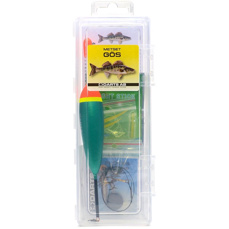 Gösen är en fisk som oftast är aktiv på kvällen och natten. Detta set innehåller ett flöte för lysstav, flötesstopp, sänken, wire med trekrok och lysstav. Färdiga metset med alla tillbehör som behövs för ett lyckat fiske. innehåller endast produkter av högsta kvalitet som är speciellt utvalda och anpassade för respektive fiske. Bildbeskrivning med tackeltips medföljer.