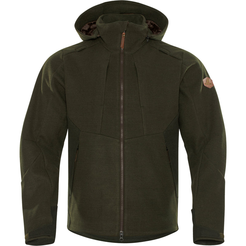 Metso Hybrid-jackan är tillverkad i en töjbar, ventilerande och mycket tyst ullblandning som har fått en Bionic Finish ECO®-behandling, så att ullen är extra vatten- och smutsavvisande. Jägare har i alla tider föredragit att jaga i ullmaterial eftersom ullen är naturligt temperaturreglerande och samtidigt ett mycket tyst material att pürscha i. För att göra jackan ännu mer motståndskraftig mot omväxlande väder har vi lagt till ett vattentätt membran upptill på ärmarna och i övre delen av ryggen, där du är som mest utsatt för väta.