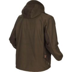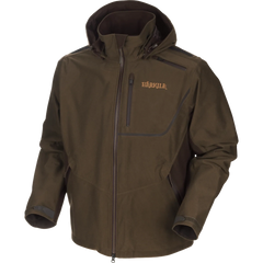 Mountain Hunter-jackan är tillverkad i ett borstat och tyst trikåmaterial. Detta säkerställer på samma gång låg vikt och lång slitstyrka, vilket är de två egenskaper man önskar vid fjälljakt, som ofta äger rum i tuff och mycket svårframkomlig terräng. På fjället kan vädret skifta snabbt från strålande solsken till kraftiga regnskurar eller snöstorm, och därför har jackan ett GORE-TEX®-membran. Den är inte bara 100 % vind- och vattentät med hög vattenpelare, utan är samtidigt mycket slitstark och andas bra. Materialet har dessutom fått en DWR-behandling, vilket står för Durable Water Repellent, som gör jackans yta smuts- och vattenavvisande. På insidan har jackan ett meshfoder som leder bort fukt från kroppen. Jackan har två snedställda, rymliga fickor fram samt en radioficka till vänster. På insidan har den en innerficka och en mindre meshficka för mobiltelefon eller liknande. Mountain Hunter-jackan har dessutom justeringsremmar i ärmsluten, och jackan kan justeras nedtill och i huvan. Huvan är avtagbar och har justerbar skärm. Jackan har tvåvägs dragkedja och halksäkert gummiband på axlarna som säkerställer att gevärsremmen inte glider ner när du bär ditt vapen över axeln.