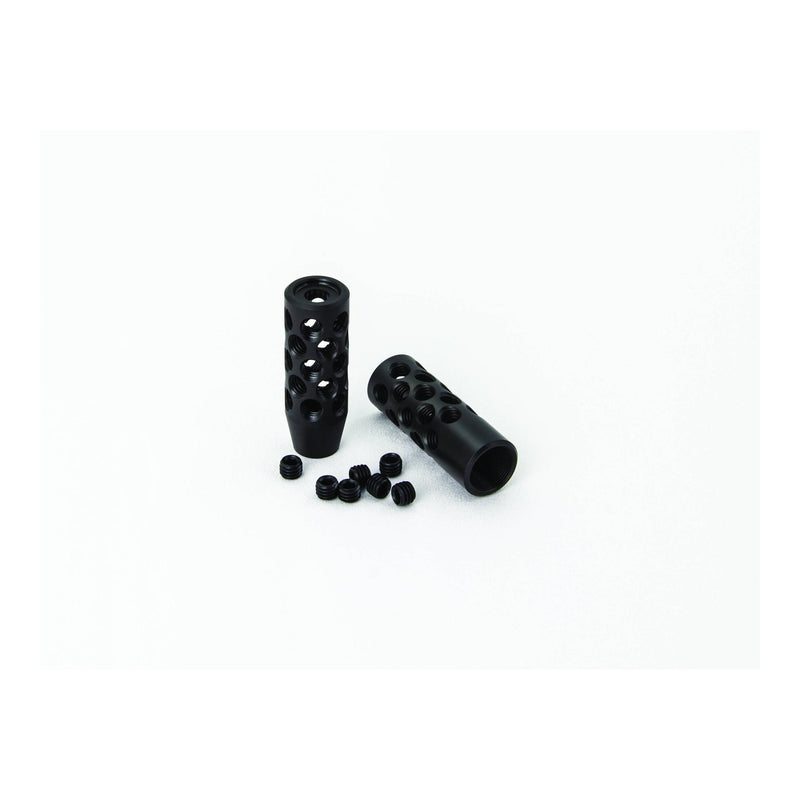 Mynningsbromsen har gängade hål i olika riktningar vilket gör injusteringen enkel. Genom att tex. sätta de medföljande skruvarna i underkant så undviks uppslag och damm från skjutvallen.