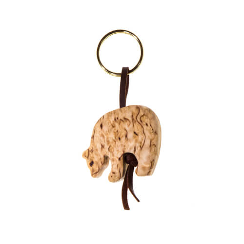 Nyckelring Björn är tillverkad av björk och bandet är tillverkad i naturgarvat skinn. En praktisk och mycket personlig gåva.