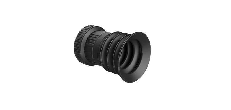 Ögonmussla med inbyggd förstoringsslins som man har på Pifra Chiron när siktet används som antingen handhållet eller direkt vapenmonterat.