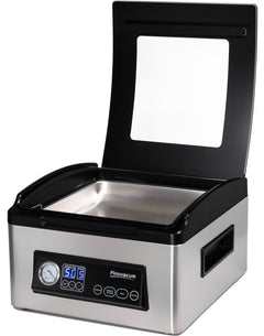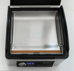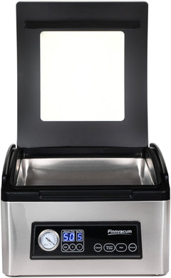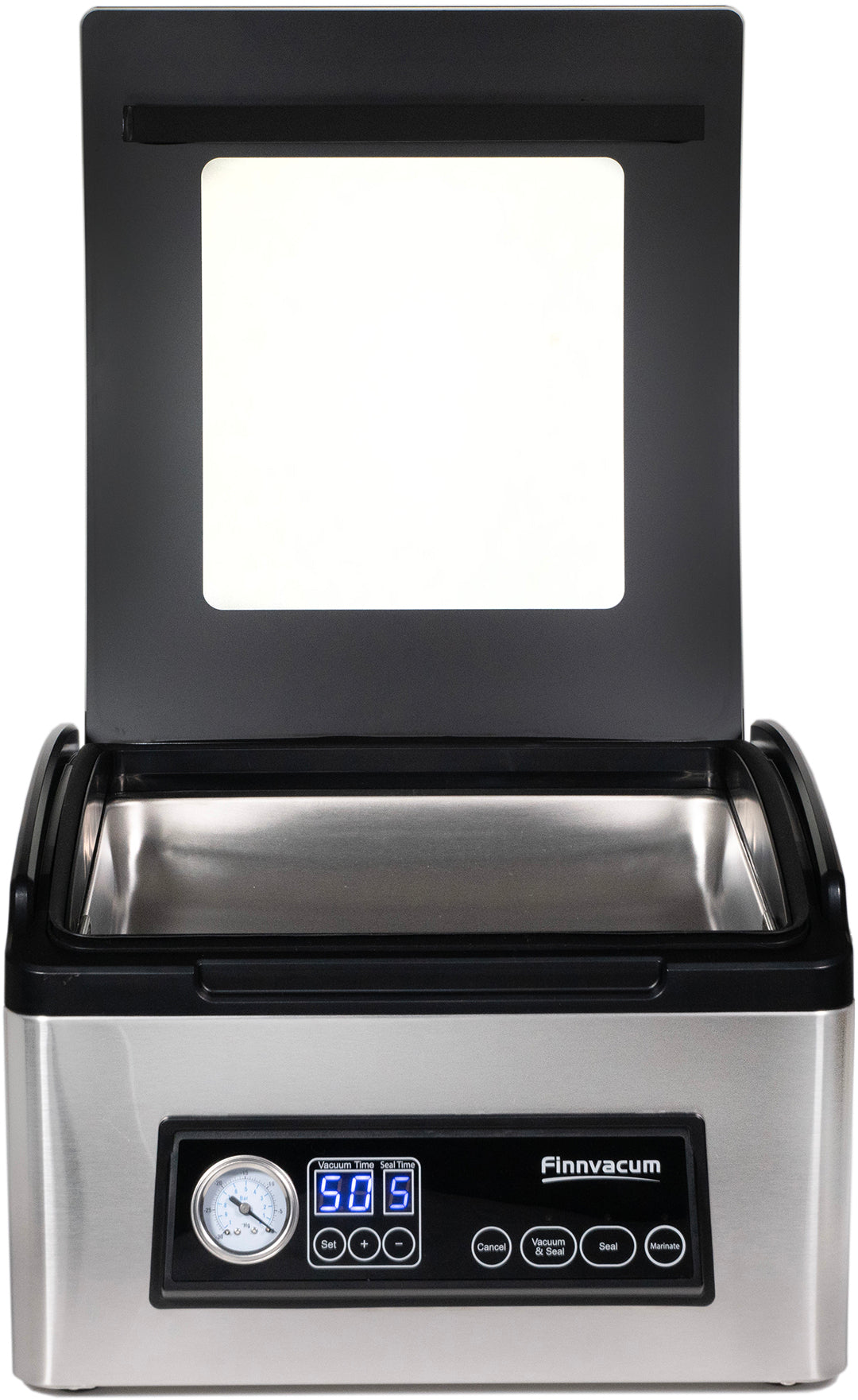 Maskinen har en rymlig kammare där du placerar dina produkter och påsen. När locket stängs skapas ett vakuum i kammar för att avlägsna luft från påsen. Sedan förseglas påsen automatiskt för att bevara vakuumet. Finnvac kammarvacuummaskin har enkel användning med intuitiva kontroller och justerbara inställningar för vakuumstyrka och förseglingstid.