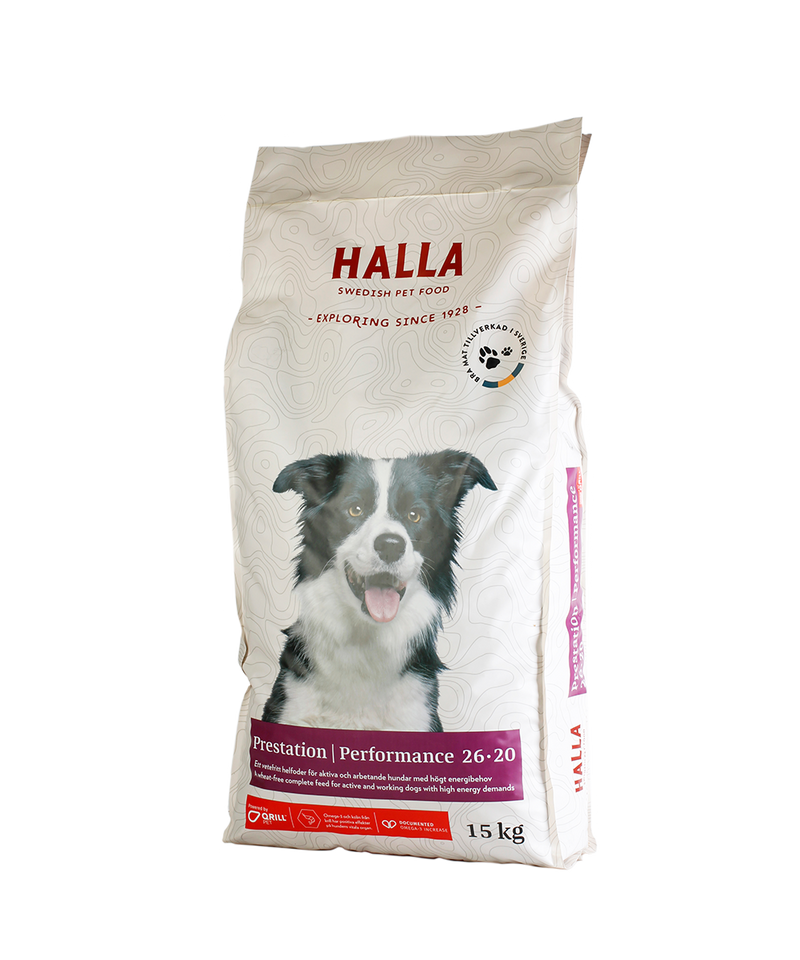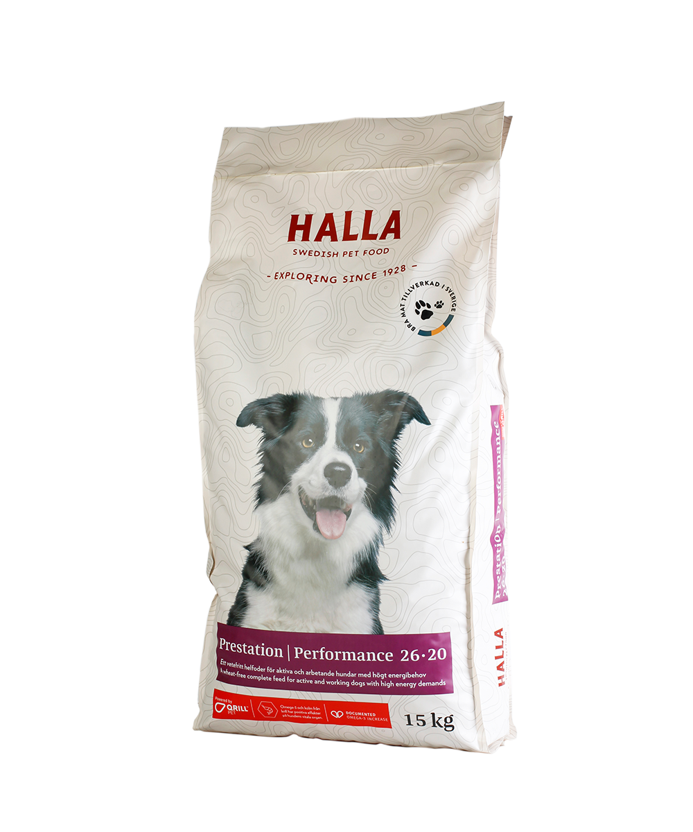 Prestation är ett vetefritt helfoder för aktiva och arbetande hundar med högt energibehov.