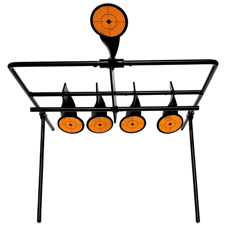 Först skjuts de fyra nedre målen, varefter det femte övre målet skjuts så att skjutmålen återtar ursprungspositionerna.