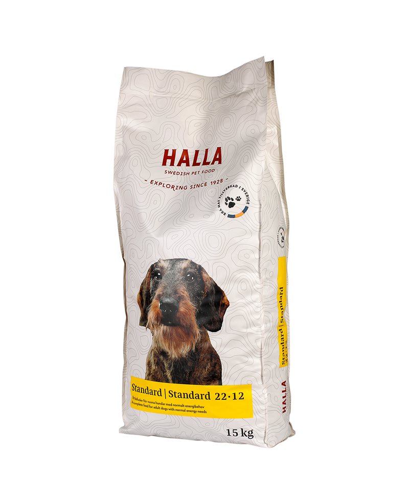 Standard är ett helfoder för vuxna hundar med normalt energibehov. Det är tillverkat