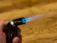 Tändaren har en ergonomiskt utformad avtryckare som ger ett säkert och bekvämt grepp, även med handskar på. De 45° vinklade låghuvudena gör det enkelt att tända bränsle i precisionslägen – exempelvis under stormkök, i eldstäder eller vid tändning av tändkuber och näver.