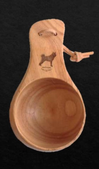 En vacker och praktisk träkåsa i skandinavisk design och utrustad med en lädersnodd för enkel upphängning.