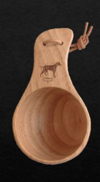 En vacker och praktisk träkåsa i skandinavisk design och utrustad med en lädersnodd för enkel upphängning.