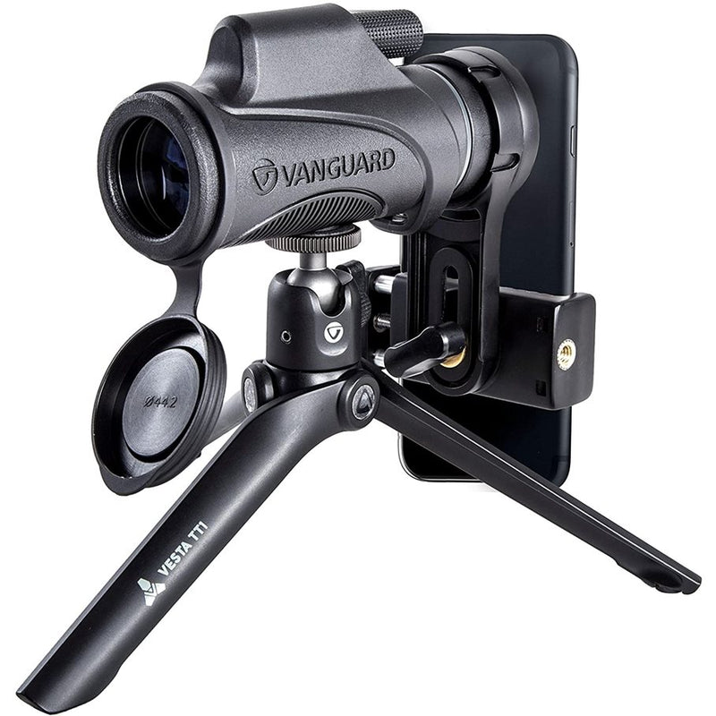Vanguard VESTA 8320M är en kompakt och lätt monokikare som är perfekt för att glida ner i en ficka för att användas var som helst på språng. Oavsett om du ser vilda djur, fåglar eller deltar i ett sportevenemang eller en konsert, kommer denna monokikare ta dig 8 gånger närmare händelserna. Dessutom innehåller paketet en smartphoneadapter, Bluetooth-fjärrkontroll som gör att alla smartphones mellan 2,1 och 3,4 tum kan användas till digiscoping och också ett lätt fällbart bordsstativ som gör att man kan både använda enheten på ett bord, bänk eller genom att snabbt fälla ihop stativet, använda den på frihand.