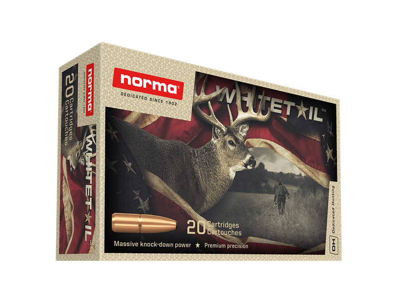Norma Whitetail är laddad i hylsor av högsta kvalitet som uppfyller och överträffar den standard som handladdare av i dag kräver. Normas beprövade Soft Point kula är en pålitlig jaktkamrat och en fantastisk allround-kula för små och medelstora vilt.